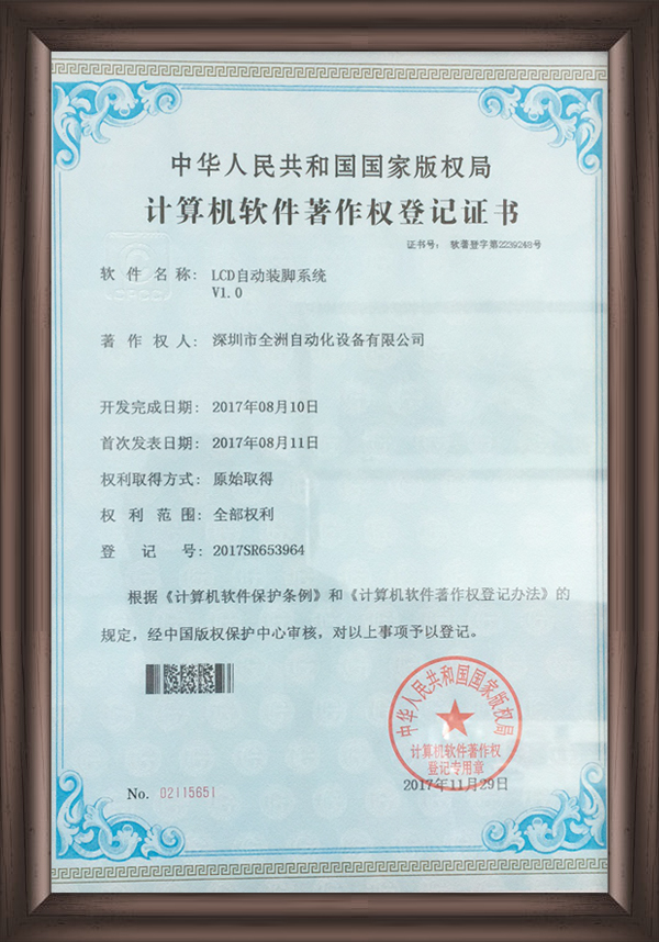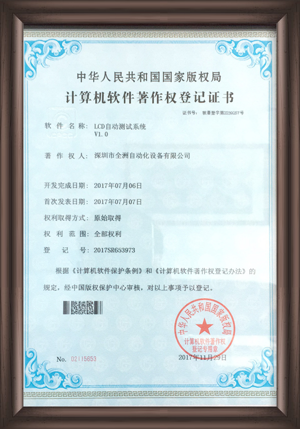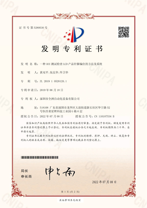 深圳市全洲自動化設(shè)備有限公司是一家集研發(fā)、生產(chǎn)、銷售為一體的國家高新技術(shù)企業(yè),擁有一支強大、資深的技術(shù)研發(fā)團隊,及完善的生產(chǎn)、銷售服務(wù)隊伍。公司致力于LCD和半導(dǎo)體行業(yè)的智能制造,先后推出了全自動貼片、裝腳、點膠、固化、切腳流水線,全自動LCD AOI測試機、COG/COB自動AOI測試機、TFT多畫面測試機。并破解行業(yè)難題,研發(fā)了分辨率達微米級的LCD整模圖像檢測機等高端設(shè)備,可應(yīng)用于LCD/TFT/集成電路/晶圓檢測等領(lǐng)域,有效提升生產(chǎn)和測試效率,保障產(chǎn)品品質(zhì)。受到了新老客戶的歡迎和好評,與業(yè)內(nèi)眾多知名企業(yè)建立了長期合作伙伴關(guān)系。公司秉承“誠信經(jīng)營、科技創(chuàng)新”的經(jīng)營理念和“團結(jié)、合作、進取”的企業(yè)精神,竭誠為客戶提供優(yōu)質(zhì)的產(chǎn)品,完善的技術(shù)服務(wù)!讓我們攜手,互利雙贏,共同發(fā)展,一起邁向企業(yè)美好的新未來、新坐標!